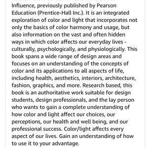 It is an integrated exploration of color and light that incorporates not only the basics of color harmony and usage, but also information on the vast and often hidden ways in which color affects our everyday lives culturally, psychologically, and physiologically. This book spans a wide range of design areas and focuses on an understanding of the concepts of color and its applications to all aspects of life, including health, aesthetics, interiors, architecture, fashion, and more.