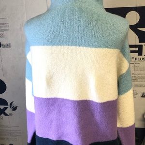 I bought this for a trip up north from Burlington and unfortunately had no room to take it :( but it is absolutely so comfortable and dependable! It is not itch at all and the neck part is not long at all, in the picture it is not folded down. It is cropped so it’s not super baggy, sized medium but can definitely work for both M and L