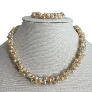 Multicolor Twisted Real Cultured Freshwater Pearl And Crystal Necklace 18in And Bracelet 7.5in Jewelry Set