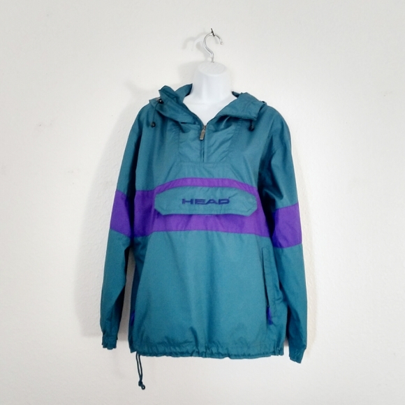 Size small Head purple and teal color block rain pull over with hood! Excellent condition! Accepting offers!