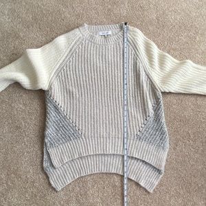 John + Jenn XL cozy monochromatic sweater with flattering color block detail. Sweater has a longer back giving it a high-low feel and perfect for a front tuck.
