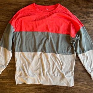 Oversized color block sweatshirt. Peach and greys. Loose fit