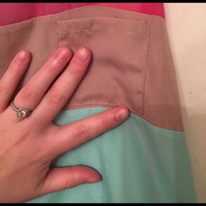 Cute color block tank top! Only worn once! Small stain on pocket from inspection sticker that was inside! Pink section is a sheer fabric!