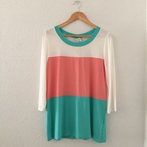 Brand new without tags 3/4 sleeves color block top with back button detail. Available in sizes S-L please comment below with the size you want to buy and I will create a separate listing for you to purchase. Price is firm unless bundled. 🚫No Trades🚫