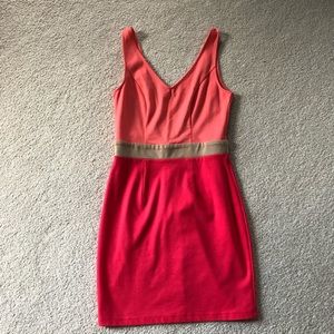 Super cute coral and hot pink color block mini dress.