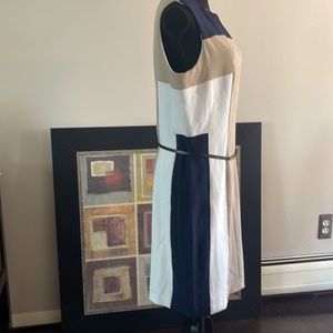 Cute color lock dress in navy, tan and cream. Fully lined