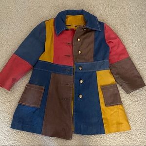 The coolest colorblock jacket, not entirely sure if I wanna get rid of this guy but it just isn’t exactly how I expected it. It fits like a large kids jacket I’d say so I would say it would only fit a women’s XS, there is pretty much no flexibility in this fabric as well. It is the brand Ellerie Fashions and has 3 quarter sleeves and is lightweight so could definitely be worn on cooler summer nights. Only flaw is the right pocket is unthreading, could easily be sewn back. Message with questions!
