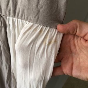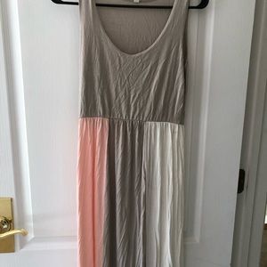 Doesn't even really look/feel like a maternity dress and very forgiving for all stages of bump life. Grey/pink/white. Has mild staining that might come out on white section, as seen in photos.