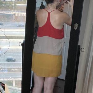 Color block crepe silk-y dress. No size listed but fits like a small. If you have any other questions please ask!!