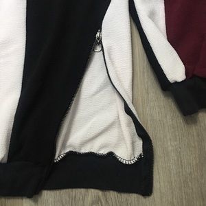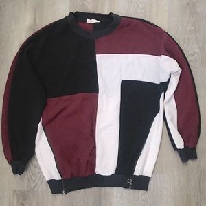 Unique retro color block pullover top / sweater with zipper detailing in front