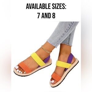 Vibrant colors and extremely comfortable. Great for the beach,spring and summer. Super easy to put on. Just slip them in!