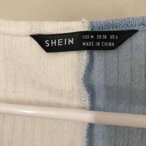 Blue and white rubbed color block sweater with a v neck. Worn once.