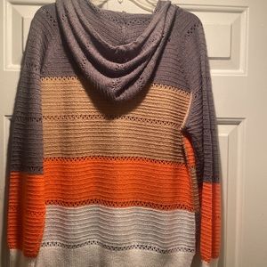 Beautiful knit color block zip up hooded sweater. Excellent condition! Very nice for cool summer evening and great for the fall.