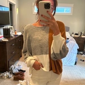 Super cute brown, gray and cream color block sweater. Very soft material.