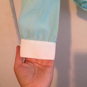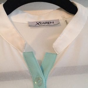 Baby blue and white color block top