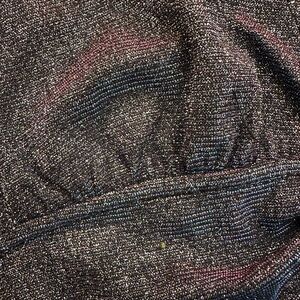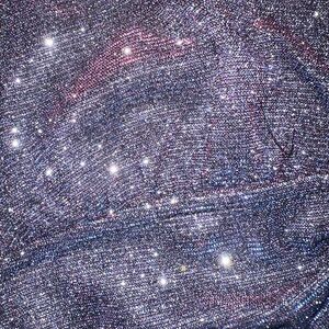 Changes color between pink and blue depending on how the light hits it. Very sparkly (some will come off on your skin when you wear it but I think that adds to the outfit!). Never worn bought for a party then wore something else.