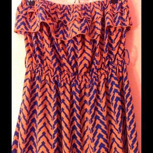 Orange and blue chevron print Tube dress. It's fun it's cute and most importantly it's COMFY! It's preloved and in GREAT condition. No stains or flaws known to my eyes. 🚫Sorry, NO TRADES 🚫