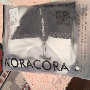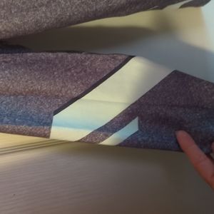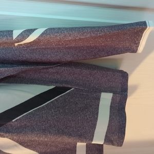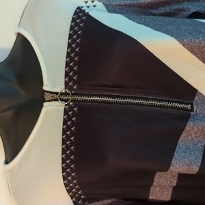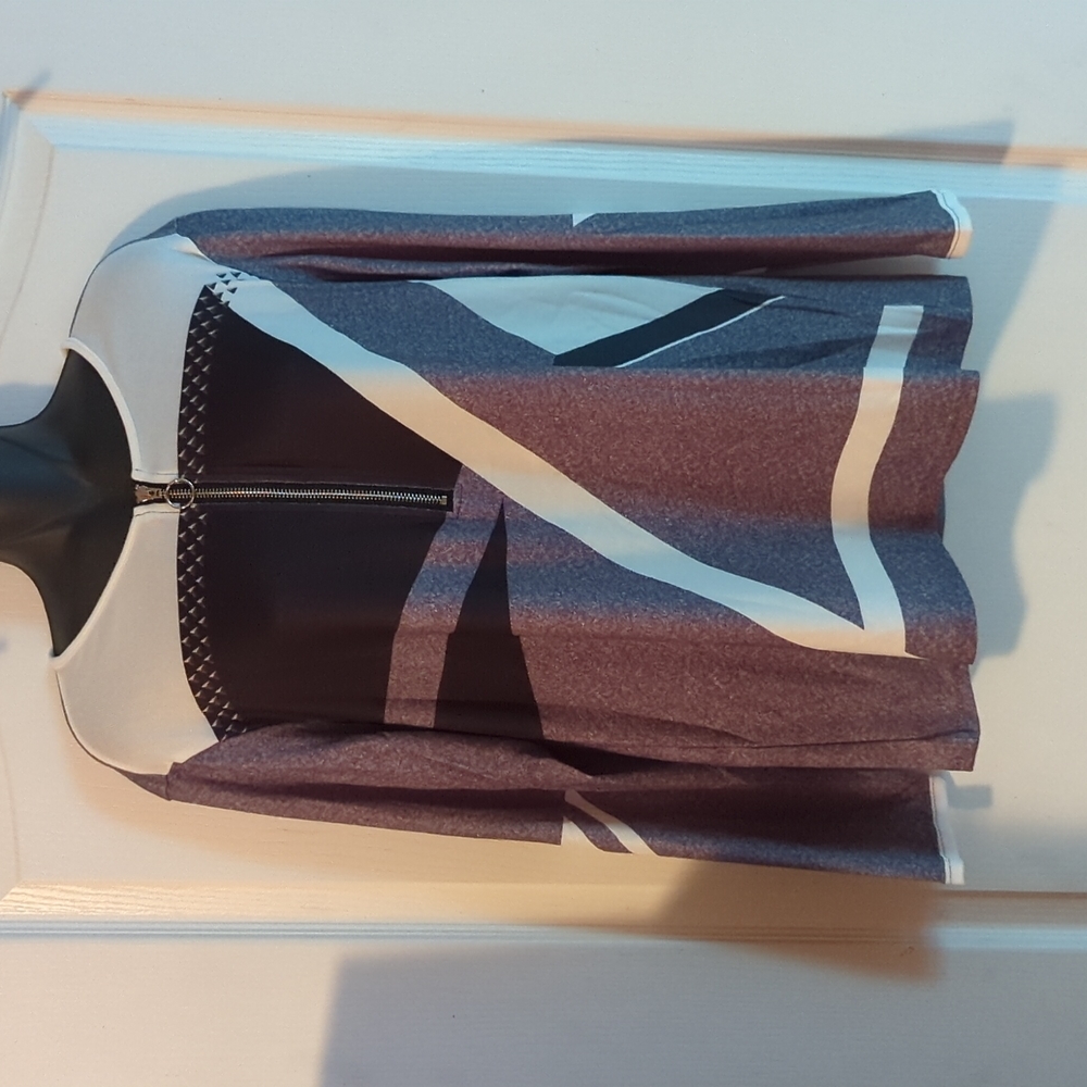 black gray and white color blocked blouse with a silver 9" zipper from the neck. super stretchy polyester long sleeved.