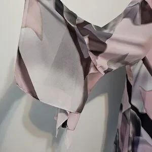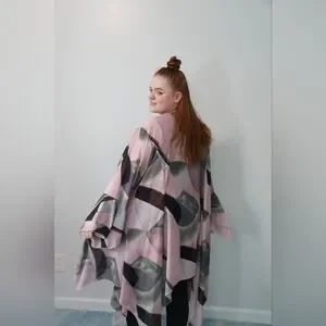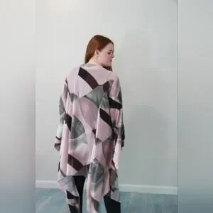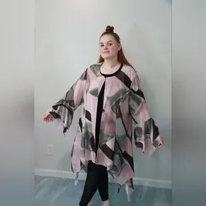 This color-block cardigan is flowy and pretty. It can be worn for work or casually. It has plenty of room and is loose fitting. It is a size 2X and is true to size. There is a hook at the top in the front, giving the option of having it closed.