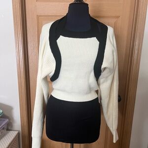 Beautiful and unique two piece set. Wear the halter only when the weather is warm and cover up with the shrug when it gets cool. Super cute and soft. Fits true to size. $54 on the Commense website.