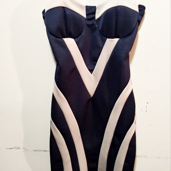 Navy Blue & Tan ColorBlock bandeau Mini Dress! Simply adorable. Great Condition Measurements in pics.
