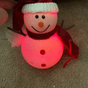 Snowman with attached USB cable that changes color once plugged into USB-port. Does not run on batteries. Colors range from pink, red, purple, blue, green, and a few that are a mix of those. Only used a couple of times.