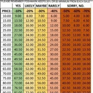 Handy chart for evaluating offers. Features a color-coded system for easy reference.