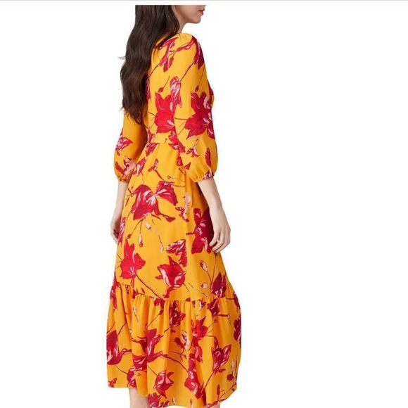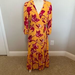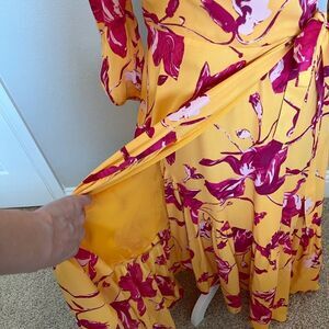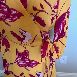 Pink and yellow wrap dress size small by Color Me Courtney. Orchid print. 100% polyester.
