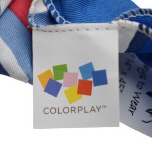 This is a new ColorPlay scarf.The print is stripes of blues, red, and white.