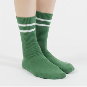 5pc sock set. Classic double stripe crew socks in 5 different colors. One size fits most people and is recommended for women between sizes 5 and 9.
