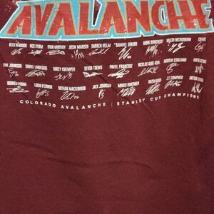 Burgundy Colorado Avalanche Champions t-shirt. In very good condition, great piece. No major flaws, see photos for details. W 21" L 27"