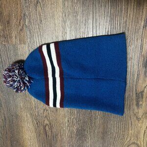 Celebrate the Colorado Avalanche hockey playoff run with this lightweight beanie. It's a cuffed-style beanie with a pom in the traditional Avs colors. Finish out the hockey season with some new Avalanche gear. No signs of blemishes or issues but the inside tag has worn away so brand is unknown. NHL gear official avalanche logo with stripes and multiple colors.