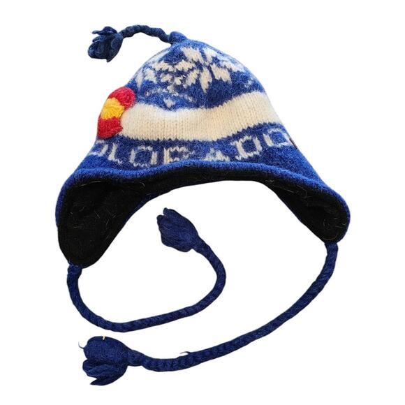 Colorado Flag Crochet Beanie 100% Wool Outer, Rising International Size S