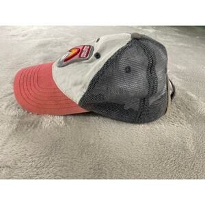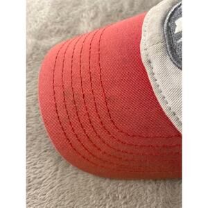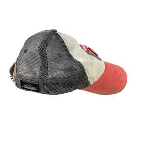 Color: Faded red brim, light beige front panel, gray mesh sides/back