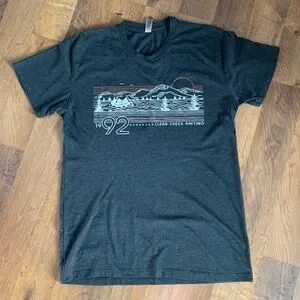 Exclusively sold in Colorado by The Clear Creek Rafting Company, nearby Idaho Springs and the Rocky Mountains just outside of Denver. If you've white water rafted, wanted to, or just like the design - you won't find these shirts online or anywhere else. It's super soft and I just mistakenly didn't make sure the size fit my hubby. It's a fun retro design with mountains, a river, and a fun hand-drawn looking design. Founded in 1992.