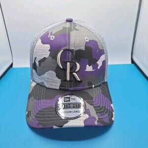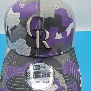 Colorado Rockies New Era 39Thirty Baseball Hat M/L Flex Fit Purple Gray Camo