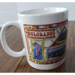 Colorado Souvenir White Ceramic Coffee Mug Moose Skiing Mountains