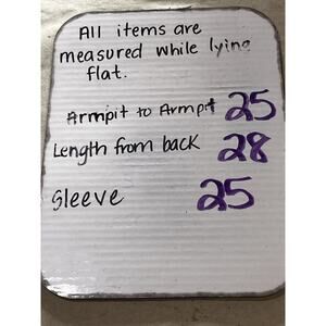 Items are listed by factory tag, but measurements are included. These are approximate measurements and may vary from tag size. Please review these prior to purchasing.