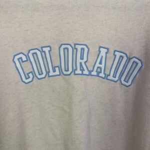 The color is cream and has blue and white lettering saying Colorado.