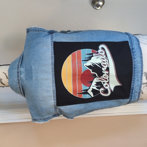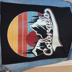 I ambellished this denim vest with a colorful Colorado graphic.