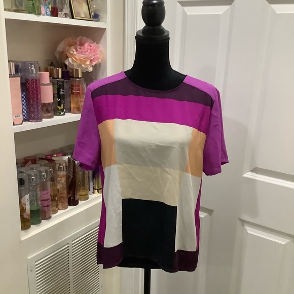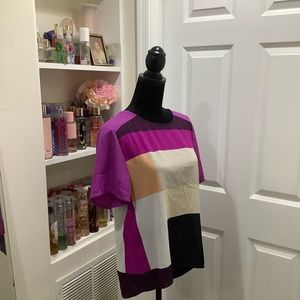 Multicolored, two back button closure, no zip, pullover, no stretch