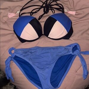 Dive into summer with this blue, pink and black bikini set. Perfect for beach days and poolside lounging. Bottoms are a mix and match- I no longer have the exact set. Price reflects but open to offers.