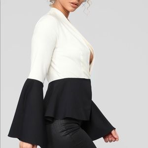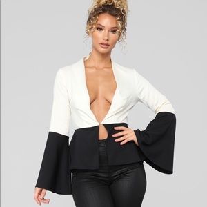 This blazer is so cute but unfortunately it’s too tight for me. It’s off white/cream and black, brand new and unworn just tried on.