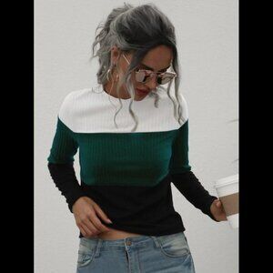 Green black white color block long sleeve top by DashOutfitter
