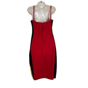 Colorblock Bodycon Dress Large Red Black Yellow Spaghetti Strap Sexy Club Date