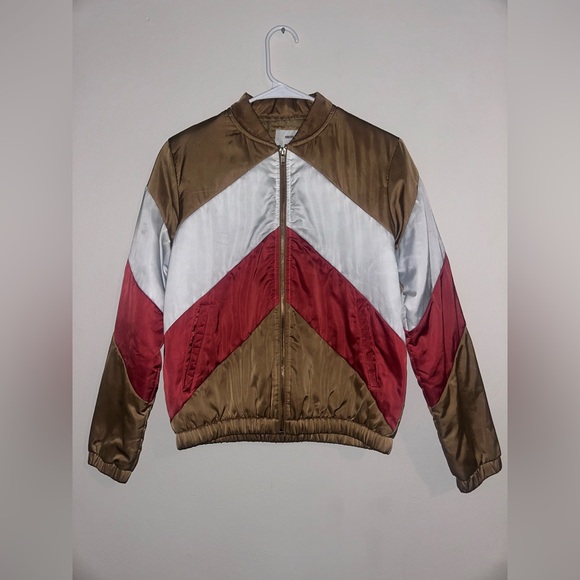 Style: Bomber Jacket, Colorblock, Chevron, Satin, Retro