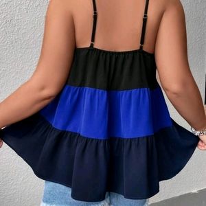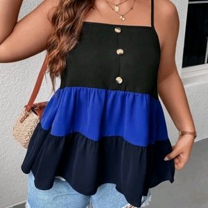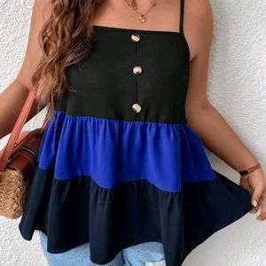 SHEIN LUNE Plus Colorblock Button Front Ruffle Hem Cami Top color black ๐ค and blue ๐