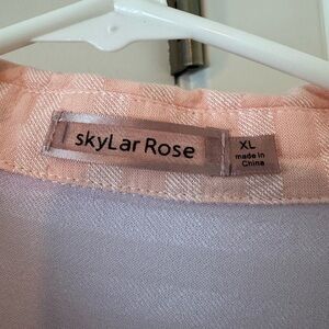 Stylish colorblock button-up shirt with pastel hues. Features a mix of pink, green, and purple panels. Perfect for casual wear. Worn and washed once. Smoke free home.
