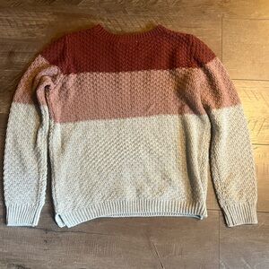 This Pink Rose sweater is a colorful and stylish option for women, juniors, or teen girls in size Small. The sweater features a color block design in shades of gray, maroon, and mauve, with a round neck and long sleeves, making it a cozy choice for cooler weather. Made of acrylic knit fabric, this pullover sweater is a versatile piece that can be easily styled for a casual or trendy look.