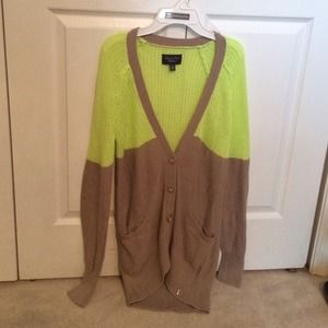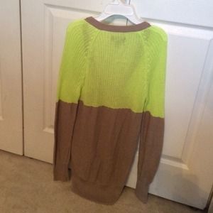 Beige and neon yellow, loose/relaxed fit, hits low thigh, never worn, great condition.